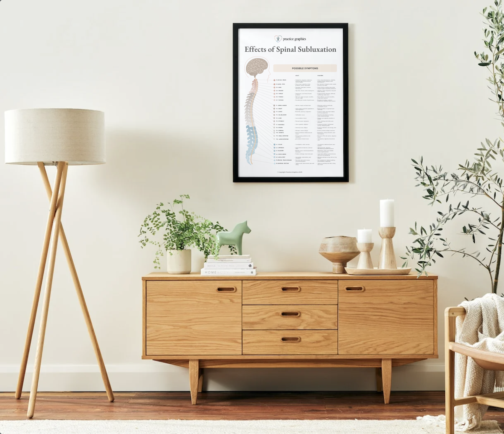 This poster links spinal subluxations to the organs and systems they influence, outlining possible symptoms in both adults and children. A clear, evidence-informed visual that helps patients understand how spinal dysfunction may contribute to health challenges across all ages.